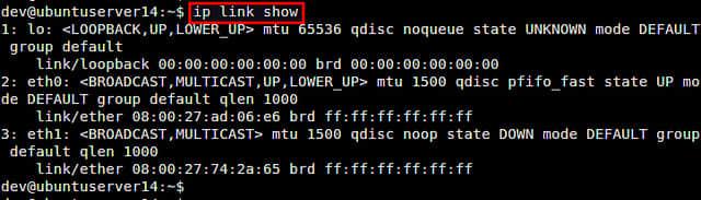 $ sudo ip link set down eth1 $ sudo ip link set up eth1