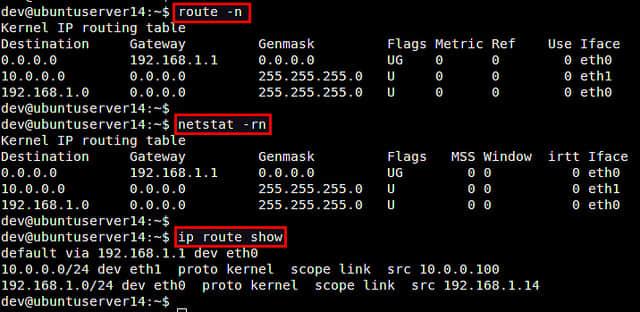 net-tools中有两个选择来显示内核的IP路由表:route和netstat。在iproute2中,使用命令ip route。