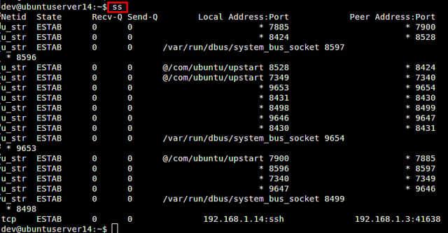 这里的命令用来查看套接字统计信息(比如活跃或监听状态的TCP/UDP套接字)。