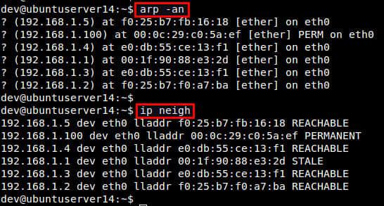 $ sudo ip neigh add 192.168.1.100 lladdr 00:0c:29:c0:5a:ef dev eth0 $ sudo ip neigh del 192.168.1.100 dev eth0
