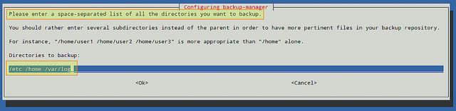 在基于Debian的系统中安装时,会提示你输入要存放备份归档文件的目录。如果选择的目录不存在,那么当你首次运行备份管理器时它会自动创建。