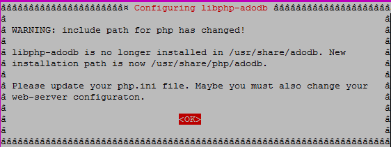 上面的命令开始 Cacti 的安装,你会看到下图中 PHP 路径的更改,选择 ok 按回车