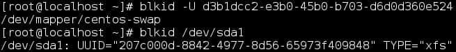 # blkid -U d3b1dcc2-e3b0-45b0-b703-d6d0d360e524