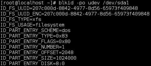 如果你只想显示一个特定设备的信息,你可以将该设备的名字作为选项添加在 blkid 后面: