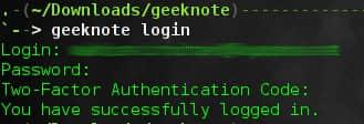 $ geeknote login