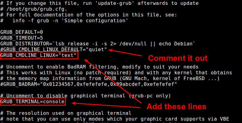 如果你想要永久启动进入命令行,你需要更新定义了内核启动参数GRUB设置。