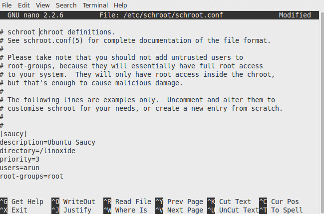 sudo nano /etc/schroot/schroot.conf
