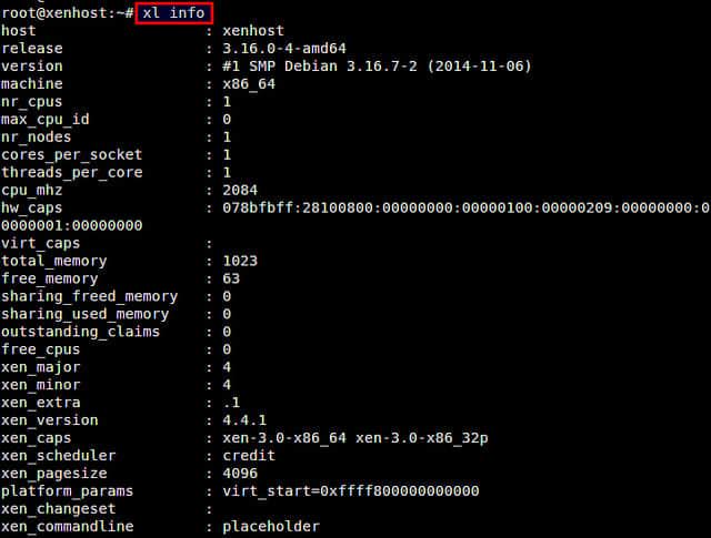 Xen 虚拟机监视器带有一个管理 Xen 的命令行程序叫做 xl,可以用来创建和管理 Xen 虚拟机。使用 xl 命令来检查 Xen 是否成功安装了。