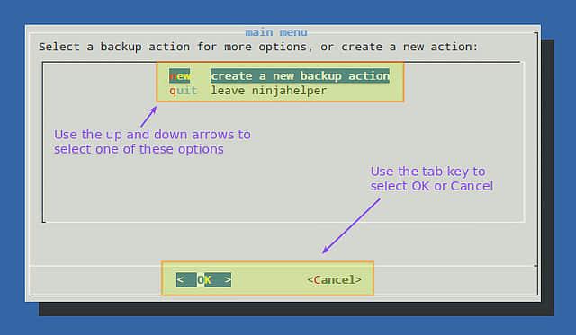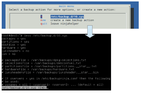Backupninja 不仅是一个经典的备份工具,它也是一个易于配置的实用程序。你可以通过编写你自己的控制脚本,用放在 /etc.backup.d 中的不同的配置文件来运行 backupninja 。甚至你还可以为 ninjahelper 编写助手程序,并将其包括在 ninjahelper 的主界面上。