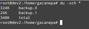 步骤 3: 确保 backup.1 里面的文件硬链接到 backup.0 里的文件,我们可以通过比较文件的 inode(i 节点)数和目录的大小来达到此目的。