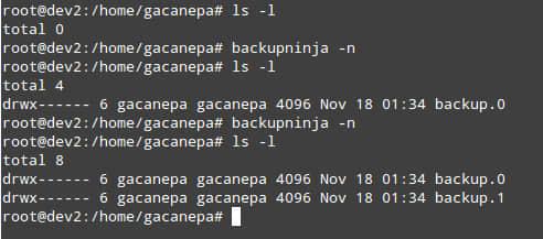 当我们第二次运行 backupninja 时, backup.0 将会被重新创建,而 backup.1 保持不动。