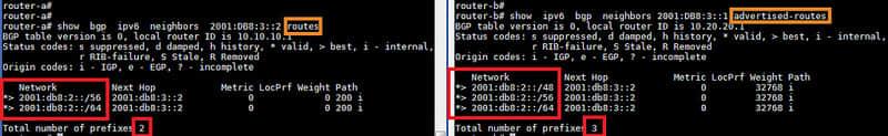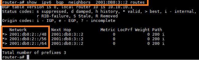 router-a# show bgp ipv6 neighbors <neighbor-IPv6-address> routes