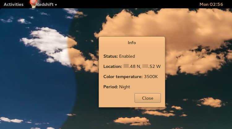 如果你想过要减少由屏幕导致的眼睛的压力,那么你很可能听过f.lux,它是一个免费的专有软件,用于根据一天中的时间来修改显示器的亮度和配色。然而,如果真的偏好于开源软件,那么一个可选方案就是:Redshift。灵感来自f.lux,Redshift也可以改变配色和亮度来加强你夜间坐在屏幕前的体验。启动时,你可以使用经度和纬度来配置地理坐标,然后就可以让它在托盘中运行了。Redshift将根据太阳的位置平滑地调整你的配色或者屏幕。在夜里,你可以看到屏幕的色温调向偏暖色,这会让你的眼睛少遭些罪。