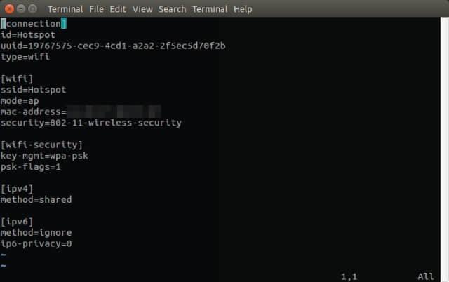 gksu gedit /etc/NetworkManager/system-connections/Hotspot