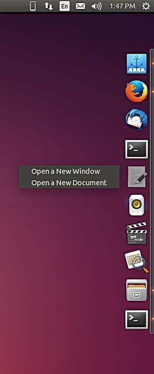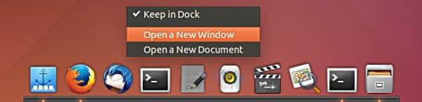 正如上面图片显示的那样,dock 包含许多带橙色标示的应用图标,这表明这些应用正处于运行状态。无需说,你可以点击一个图标来打开那个应用。同时,右击一个应用图标会给出更多的选项,你可能会感兴趣。举个例子,看下面的屏幕快照: