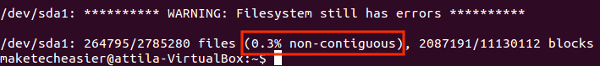 这会产生大量的输出,大多数错误信息的原因是分区已经挂载了。最后会给出一个碎片相关的信息。
