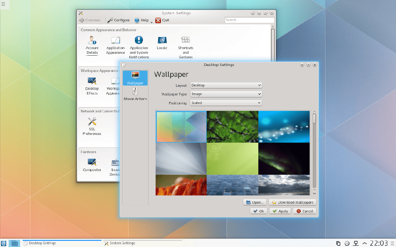 KDE Plasma 5 – 第五代 KDE。大幅改进了设计和系统,新的默认主题 Breeze 完全迁移到了 QML,更好的 OpenGL 性能,更完美的 HiDPI (高分辨率)显示支持。