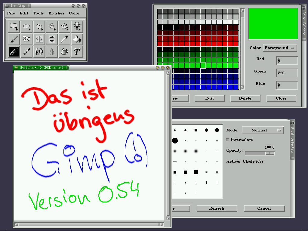 GIMP 0.54 版可以在 Linux、HP-UX、Solaris 和 SGI IRIX 中运行。