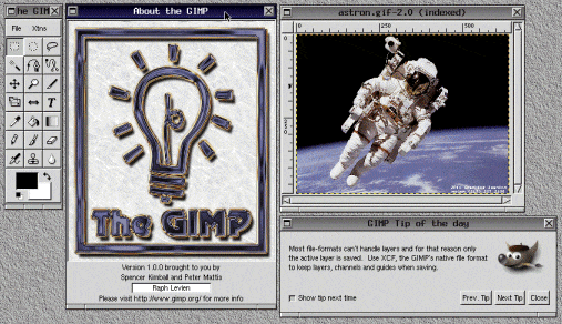 GIMP( GNU 图像处理程序 )—— 一流的开源自由的图像处理程序。加州大学伯克利分校的 Peter Mattis 和 Spencer Kimball 早在 1995 年的时候开始了该程序的开发。到了 1997 年,该程序成为了 GNU Project 官方的一部分,并正式更名为 GIMP。时至今日,GIMP 已经成为了最好的图像编辑器之一,并有经常有 “GIMP vs Photoshop” 之争。