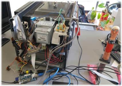 如果把“Linux”和“微波炉”联系在一起的话,你可能会想到给微波炉加上一个智能手机式的触摸屏和网络链接,然后再通过社区做一款微波炉的“革命性”的手机应用,想到这些就像做菜想到分享食谱一样显而易见。但Tulloh的目标和他的原型远远超过这些,他做了两个新奇的功能——热感相机和称量物体质量的称重装置。