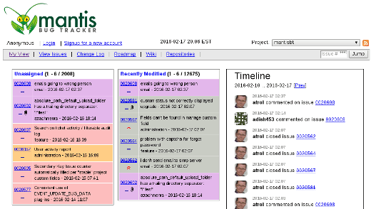 Mantis是这次合集中我们将看到的最后一个工具,基于PHP,且有16年历史。作为另一个支持多种不同版本控制系统和事件驱动通知系统的bug跟踪管理软件,Mantis有一个与其他工具类似的功能设置。虽然它不本身包含wiki,但它整合了很多流行的wiki平台且本地化到多种语言。