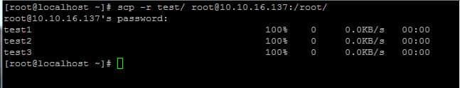 [root@localhost ~]# scp root@10.10.16.137:/root/importantfile /home/admin/ The authenticity of host '10.10.16.137 (10.10.16.137)' can't be established. RSA key fingerprint is b0:b0:a3:c3:2e:94:13:0c:29:2e:ba:0b:d3:d6:12:8f. Are you sure you want to continue connecting (yes/no)? yes Warning: Permanently added '10.10.16.137' (RSA) to the list of known hosts. root@10.10.16.137's password: importantfile 100% 0 0.0KB/s 00:00 [root@localhost ~]#