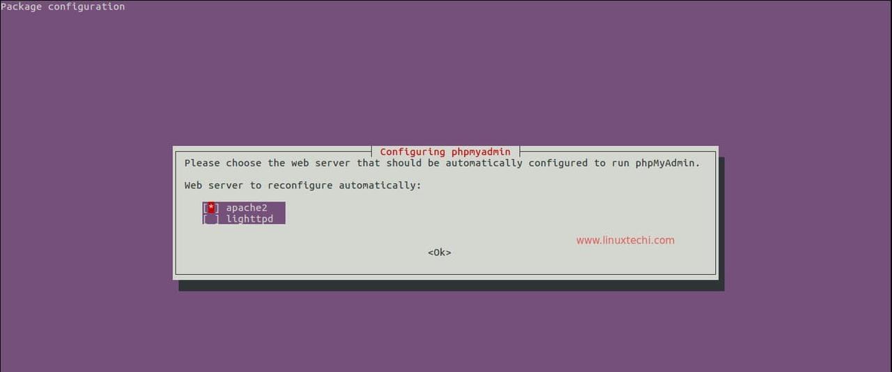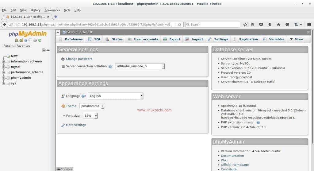 linuxtechi@ubuntu:~$ sudo apt install php-mbstring php7.0-mbstring php-gettext linuxtechi@ubuntu:~$ sudo systemctl restart apache2.service linuxtechi@ubuntu:~$ sudo apt install phpmyadmin