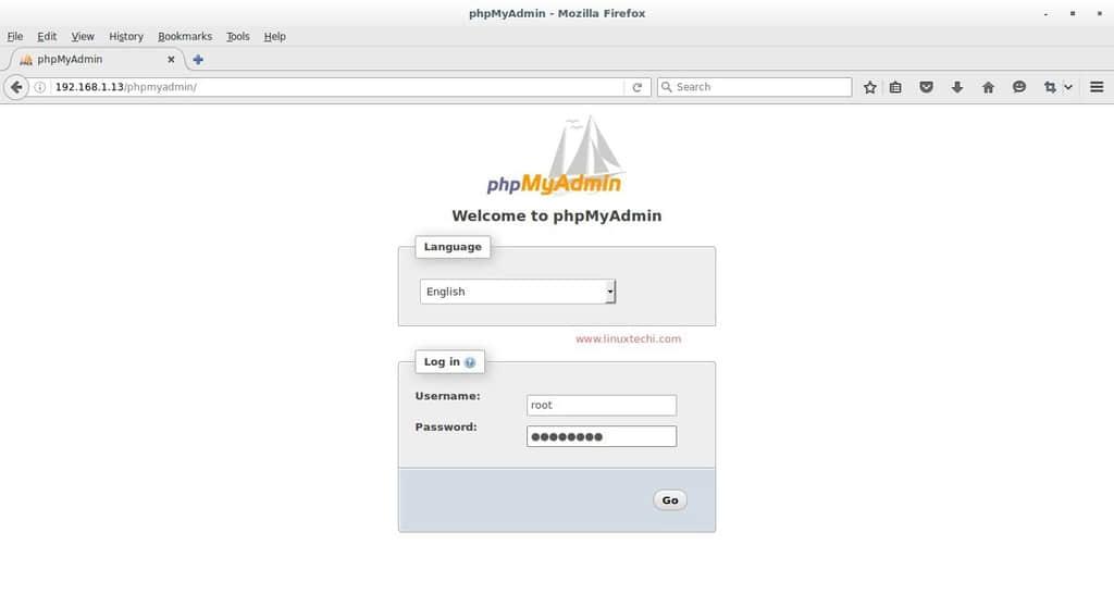 现在可以开始尝试访问 phpMyAdmin,打开浏览器并输入 : “http://Server_IP_OR_Host_Name/phpmyadmin”