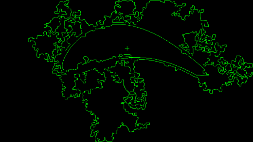 虽然无关的轮廓没有了,但是图像还有个问题。图像本该只有一个轮廓,但是它来回绕了自己两次,没有完整地圈起来。区域在这里不能作为决定因素,所以必须试试其他方式。