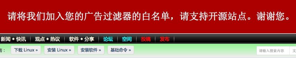 我去检查了一下广告过滤软件所常用的黑名单列表,比如 easylistchina+easylist,只是搜索“linux”这个关键字,就有60条匹配,也就是说大部分和 Linux 相关的站点都被加入了广告过滤的黑名单了,我想,这些站点可能也没钱申请加入白名单。