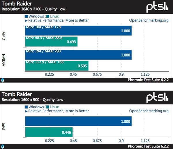 《古墓丽影》在 Linux 下的性能十分之糟,只有 Windows 下的一半左右。