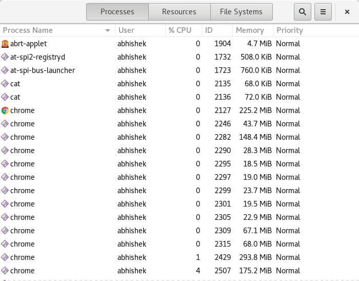 当你启动系统监视器的时候,它会向你展示所有正在运行的进程及其消耗的内存。