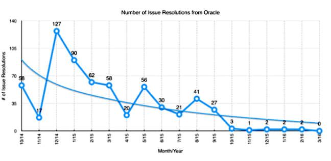 甲骨文在其自己的 JSF 实现上的解决问题数的变化