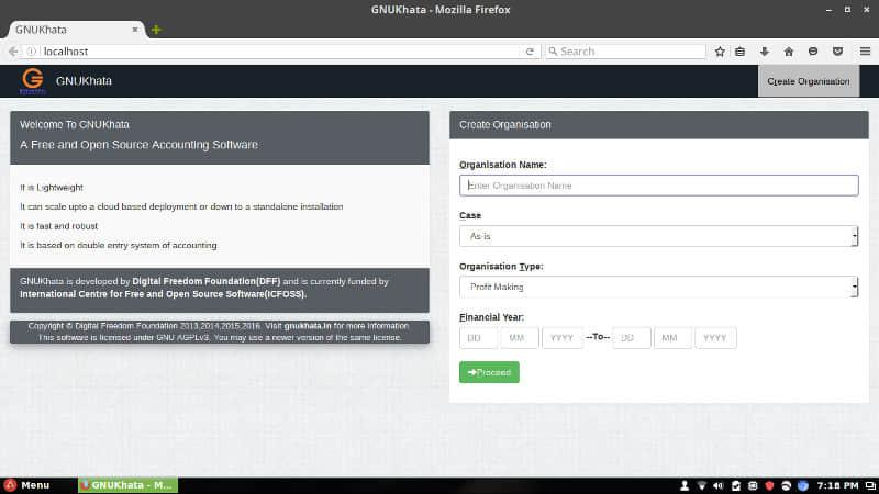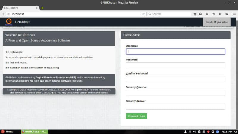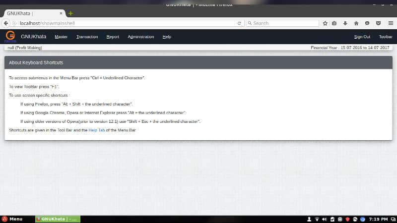 GNU Khata 在浏览器中打开,并且展现以下的画面。