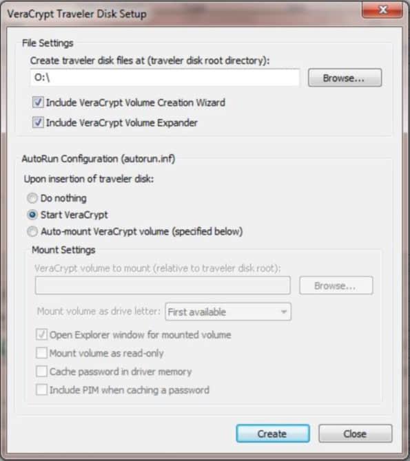 如果你设置闪存盘的时候,选择的是加密过的容器而不是加密整个盘,你可以选择创建 VeraCrypt 称为 移动硬盘 的设备。这会复制安装一个 VeraCrypt 到 USB 闪存盘。当你在别的 Windows 电脑上插入 U 盘时,就能从 U 盘自动运行 VeraCrypt;也就是说没必要在新电脑上安装 VeraCrypt。