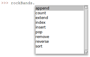 >>> rockBands.append("The Beatles")