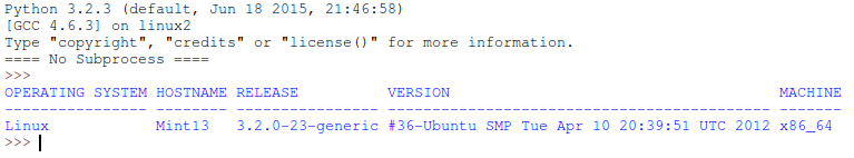 一个包含有文件内容的新窗口就会打开。然后执行 Run → Run module(或者按 F5)。脚本的输出就会在原始的 Shell 里显示出来:
