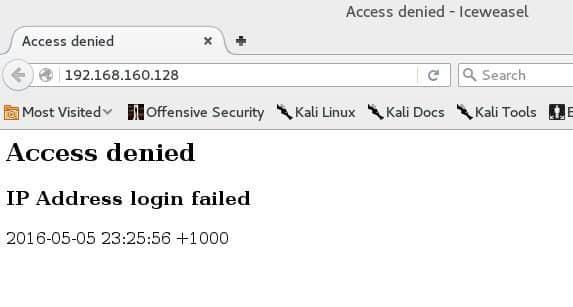 这样就在 80 端口上开启了一个蜜罐。打开浏览器并且打开链接 http://192.168.160.128 (这里的 192.168.160.128 是你自己的 IP 地址。)你应该会看到一个 Access denied 的报错。