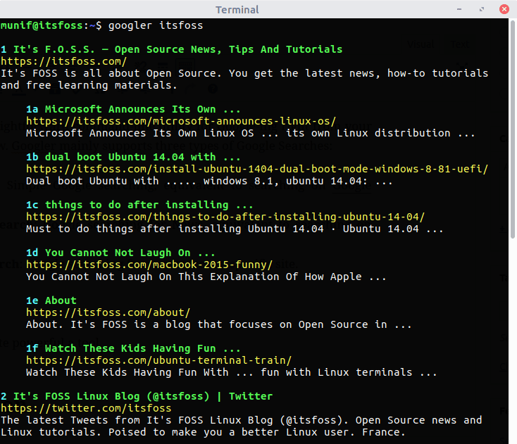 googler -w itsfoss.com