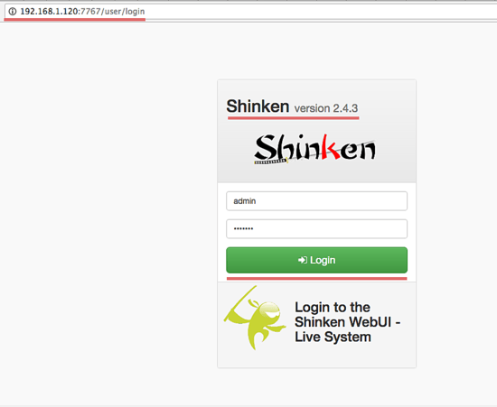 在端口 7677 访问 Shinken webui2 (将 URL 中的 IP 替换成你自己的 IP 地址):