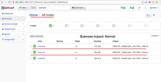 我们的两个服务器正在被 Shinken 监控: