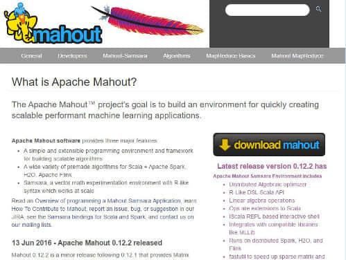 它是 Apache 基金会项目,Mahout 是一个开源机器学习框架。根据它的网站所言,它有着三个主要的特性:一个构建可扩展算法的编程环境、像 Spark 和 H2O 一样的预制算法工具和一个叫 Samsara 的矢量数学实验环境。使用 Mahout 的公司有 Adobe、埃森哲咨询公司、Foursquare、英特尔、领英、Twitter、雅虎和其他许多公司。其网站列了出第三方的专业支持。