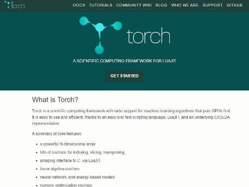 Torch 将自己描述为:“一个优先使用 GPU 的拥有机器学习算法广泛支持的科学计算框架”,它的特点是灵活性和速度。此外,它可以很容易的通过软件包用于机器学习、计算机视觉、信号处理、并行处理、图像、视频、音频和网络等方面。它依赖一个叫做 LuaJIT 的脚本语言,而 LuaJIT 是基于 Lua 的。