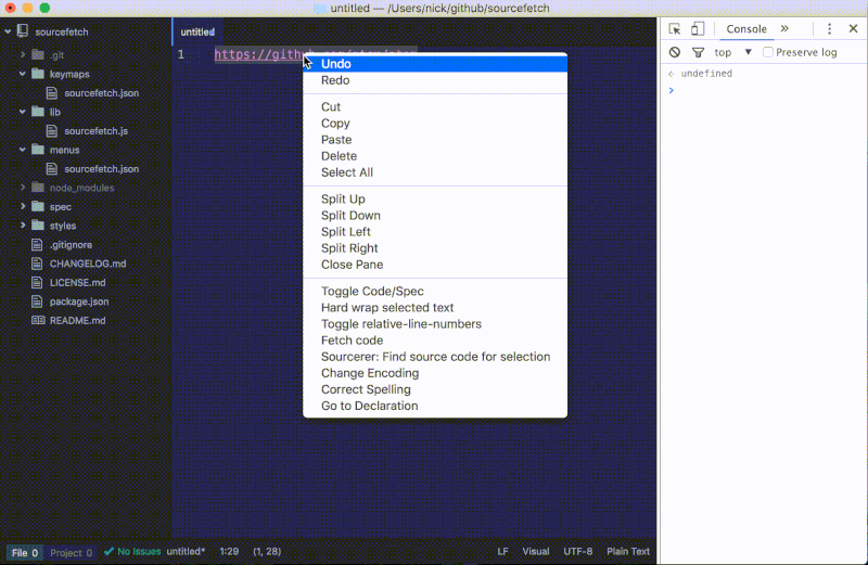 fetch() { let editor if (editor = atom.workspace.getActiveTextEditor()) { let selection = editor.getSelectedText() this.download(selection) } },