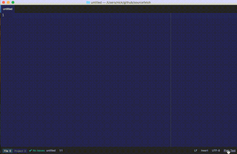 Cmd+Shift+P(MacOS)或者Ctrl+Shift+P(Windows/Linux)来打开 命令面板 。 - 搜索“Package Generator: Generate Package”并点击列表中正确的条目,你会看到一个输入提示,输入软件包的名称:“sourcefetch”。