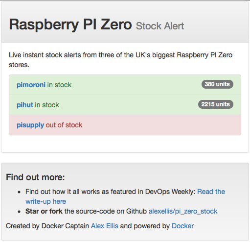 $ git clone https://github.com/alexellis/pi_zero_stock $ docker-compose up -d