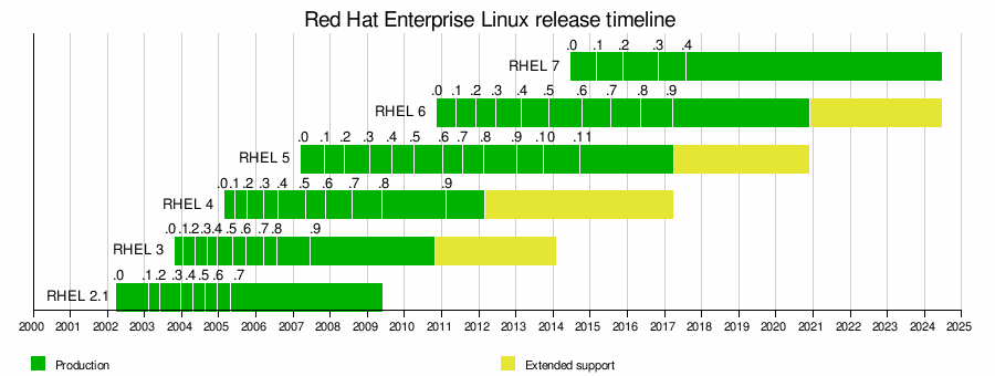 Red Hat Enterprise Linux 大约 3 年发布一个新版本。