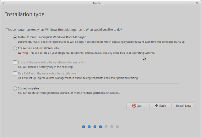如果你有一个备用的未分配的磁盘分区和并且安装了 Windows,您将看到可以选择在已有 Windows 的情况下安装 Xubuntu 并设置双启动。