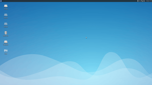 Xubuntu 的初始界面只有一个面板位于蓝色桌面的顶部。通过桌面上的图标,你可以看到所有可用的驱动器。