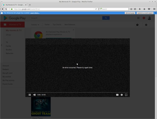 本节的第一个图片说明了原因。这张图片里,我试图观看 Google Play 商店的 “Curb Your Enthusiam” 视频,可惜的是各种 DRM 和其它一些问题导致了视频无法播放。